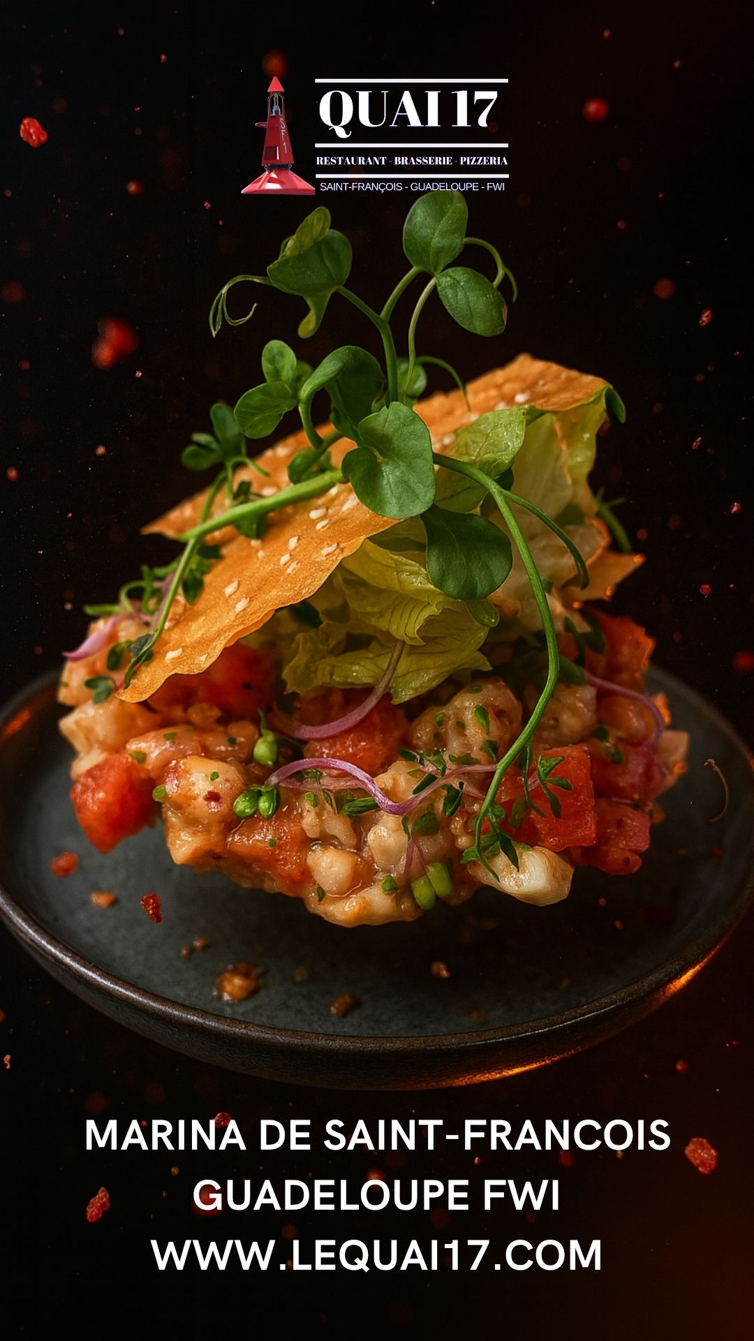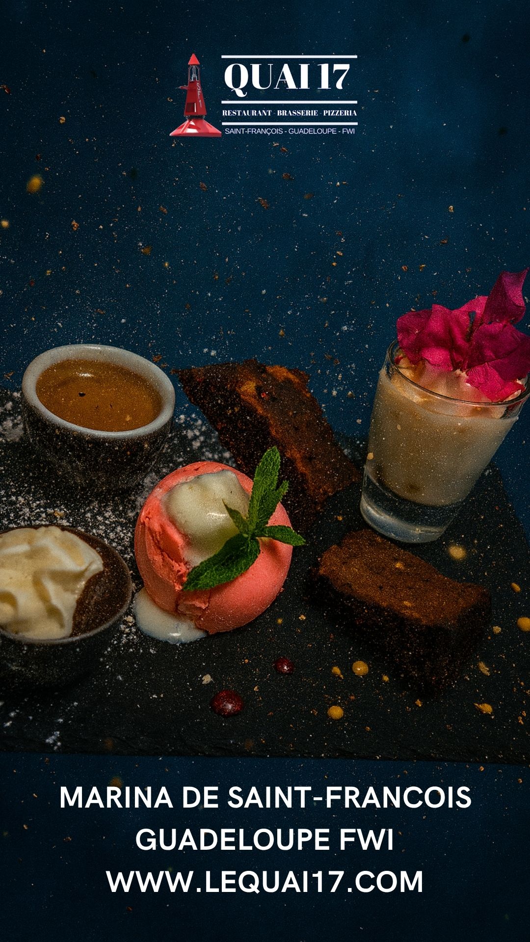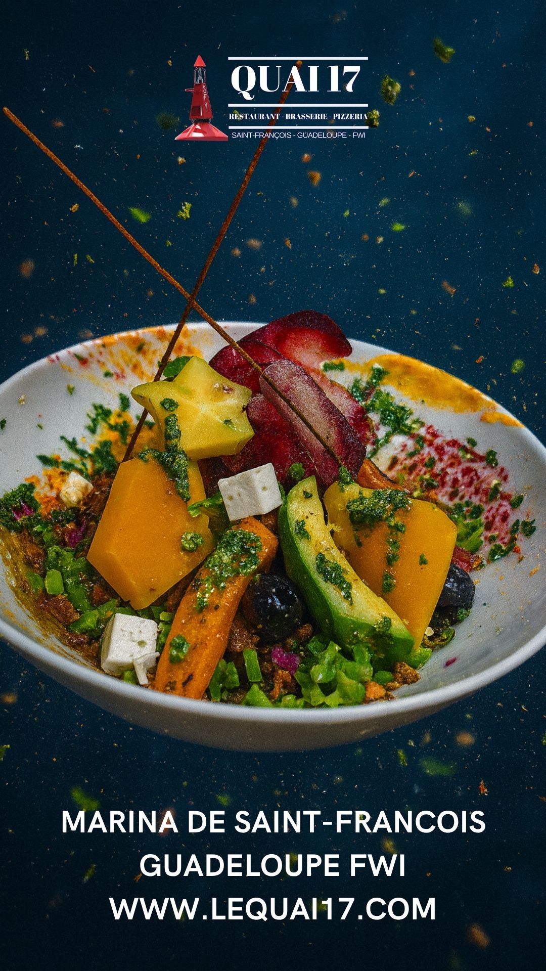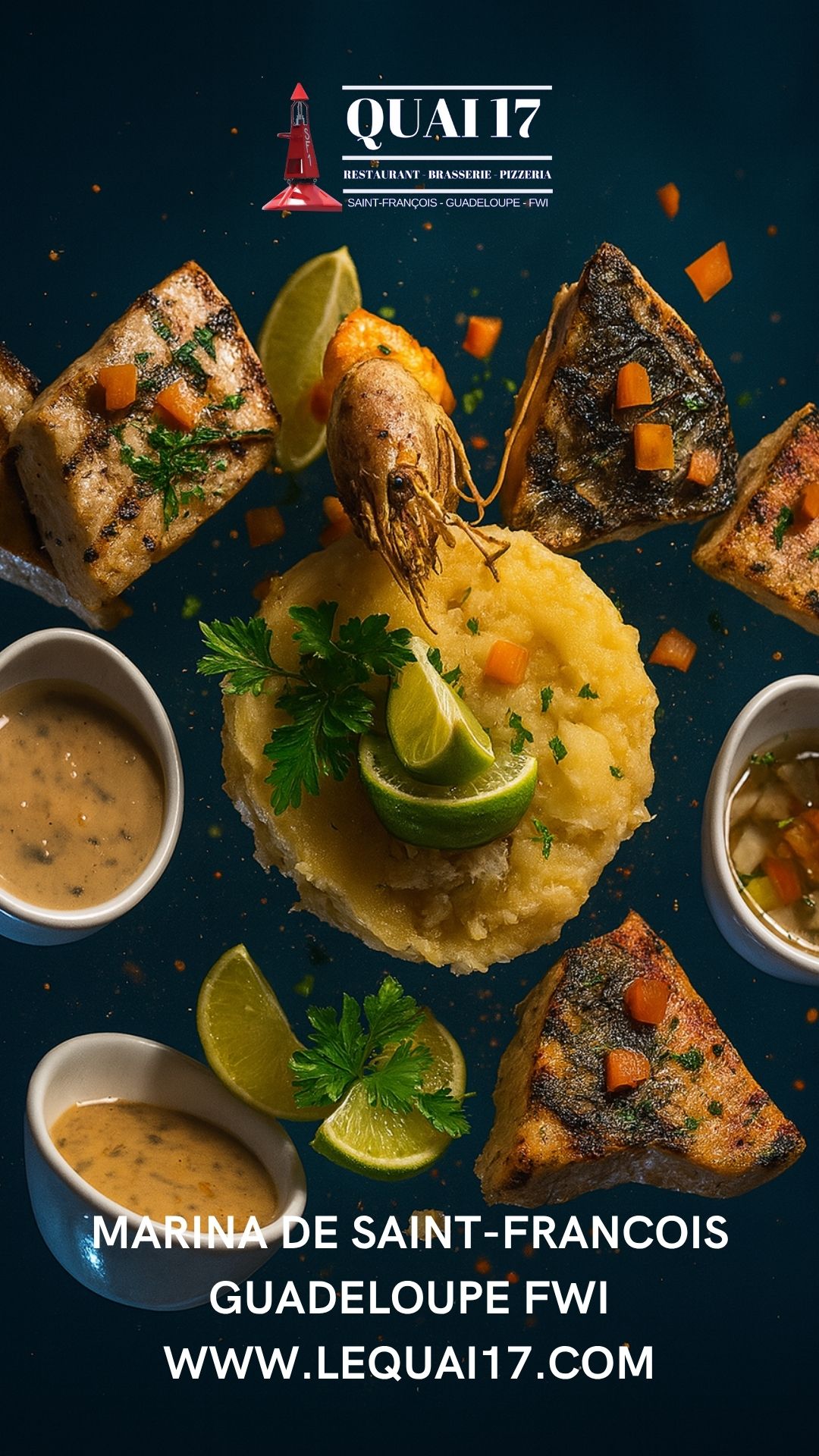 Le restaurant Quai 17 est très populaire pour son accueil, mais aussi pour sa carte qui ne néglige personne : Un large choix de salades fraiches, dont une salade 100% végétarienne, une carte de poissons et de viandes complète et variée pour tous les goûts, une gamme de pizzas cuites au four à bois à consommer sur place ou à emporter et des desserts et glaces pour terminer votre bon repas, en couple, entre amis ou en famille.