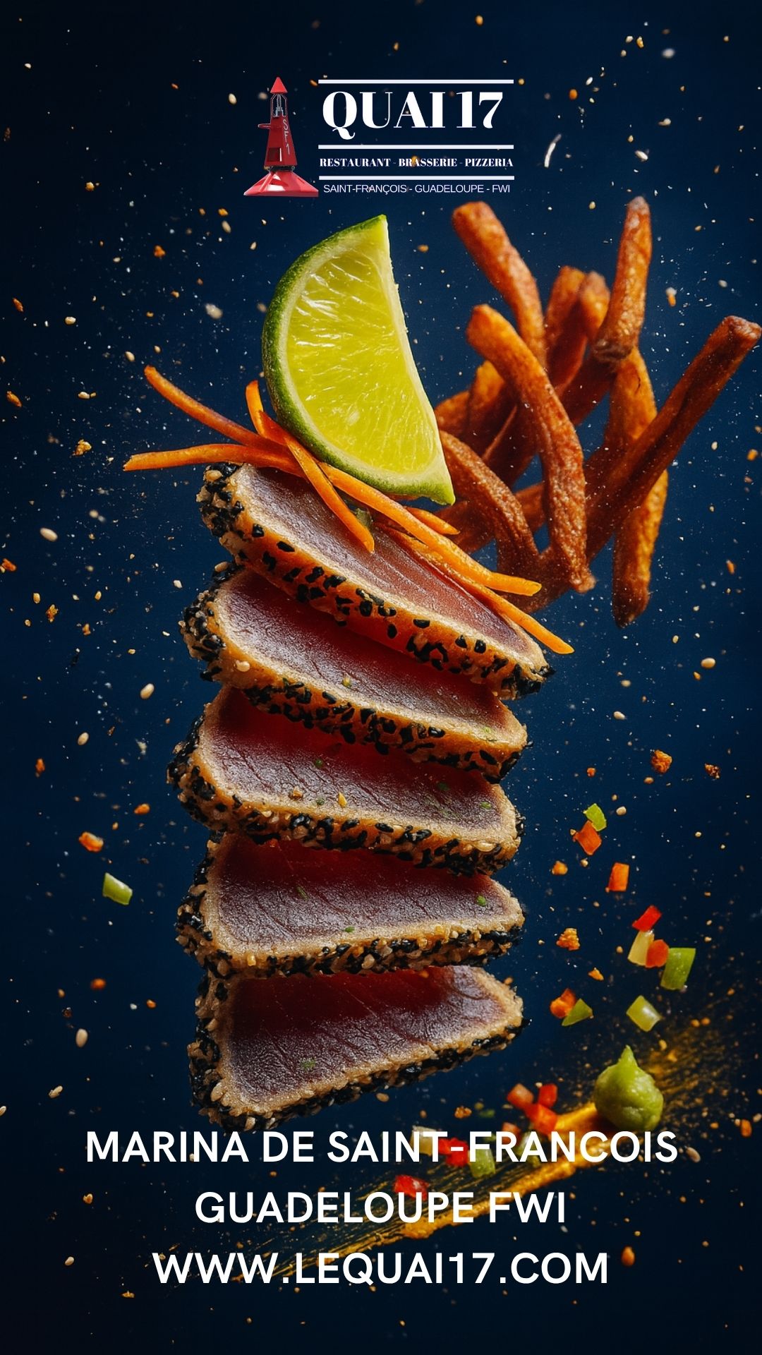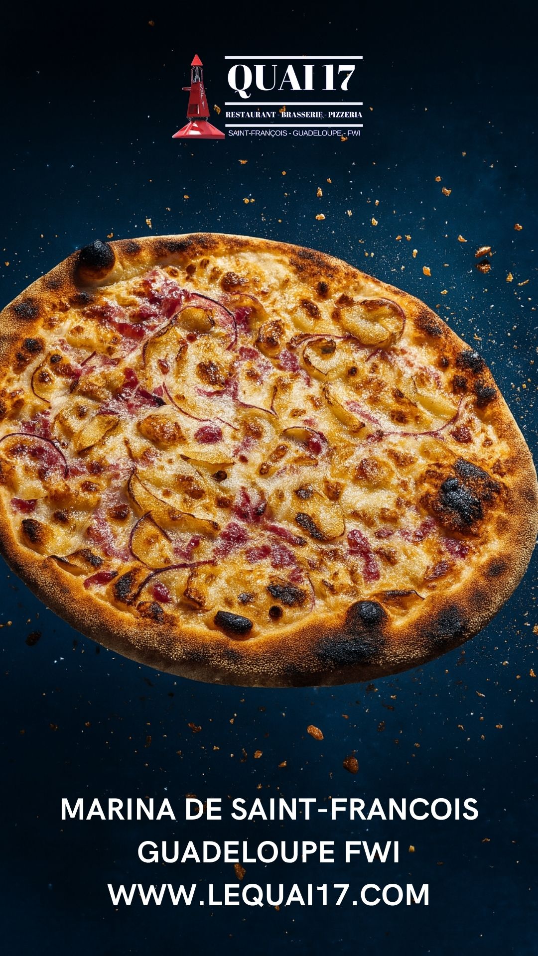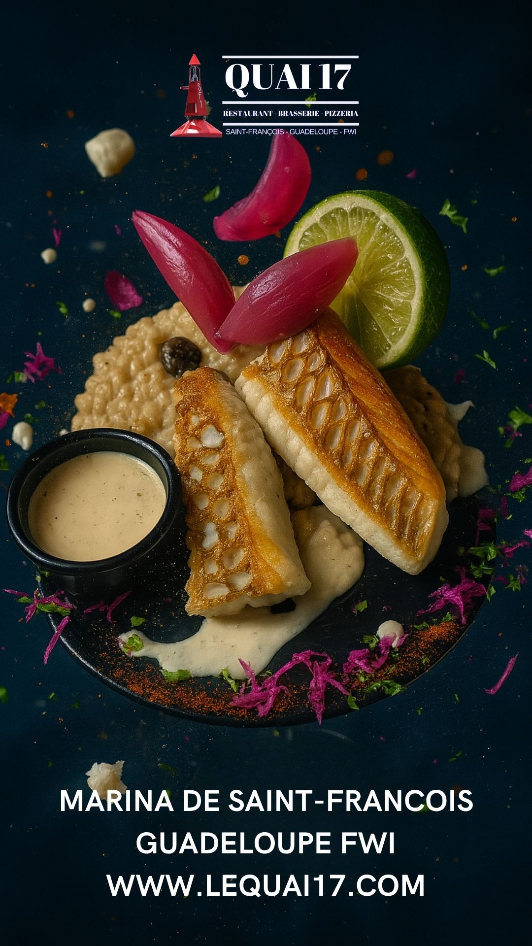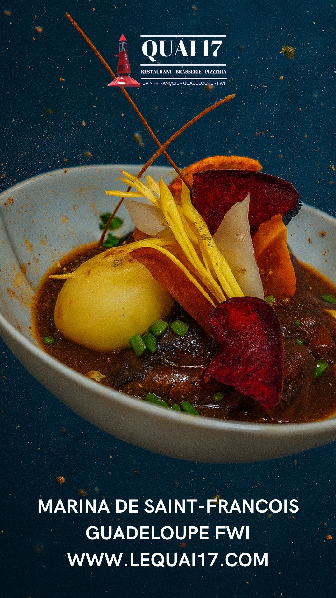Le restaurant Quai 17 est très populaire pour son accueil, mais aussi pour sa carte qui ne néglige personne : Un large choix de salades fraiches, dont une salade 100% végétarienne, une carte de poissons et de viandes complète et variée pour tous les goûts, une gamme de pizzas cuites au four à bois à consommer sur place ou à emporter et des desserts et glaces pour terminer votre bon repas, en couple, entre amis ou en famille.